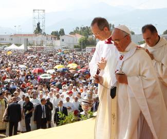 “Keď si človek namiesto uctievania Pána zbožšťuje peniaze, vytvára priestor pre zlo, osobné záujmy a využívanie druhých,” povedal pápež za potlesku približne 250 000 ľudí, ktorí sa zhromaždili na poli blízko mesta Sibari. „Keď človek neuctieva Pána Boha, uctieva tak zlo, rovnako ako tí, ktorých životy sú plné kriminality a násilia.“