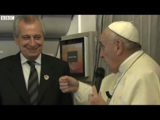 Aby ilustroval svoju poznámku, zavtipkoval ohľadom vatikánskeho asistenta Alberta Gasparriho, ktorý bol neďaleko v lietadle.
