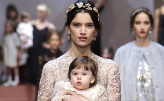 Na ojedinelej módnej prehliadke Dolce a Gabbana účinkovali modelky, matky, ktoré počas predvádzania modelov niesli na rukách svoje deti.