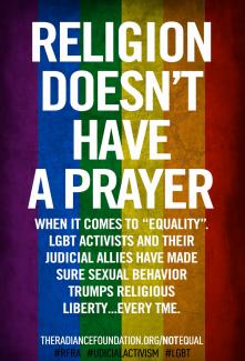 Iróniou je, že v celej tejto kultúrnej tsunami, ktorá sa ženie cez našu krajinu, neodmietajú homosexuálov a bisexuálov, či intersexuálov alebo akýchkoľvek-sexuálov. LGBT ľudia nedostávajú pokuty, nenútia ich chodiť na školenia ani ich neoberajú o ich živobytie; robia to kresťanom, ktorí neveria, že by mali byť nútení k tomu, aby sa zúčastňovali alebo podporovali určité podujatia zamerané na homosexualitu. Náboženská sloboda, ktorá je asi profesorovi histórie zmeneného na technologického proroka, Timovi Cookovi, neznáma, je vlastne prvým právom, ktoré Ústava dáva Američanom. „Sexuálnej orientácii“ sa to nepodarilo. No i tak akosi pretromfla naše skutočné ústavné práva.