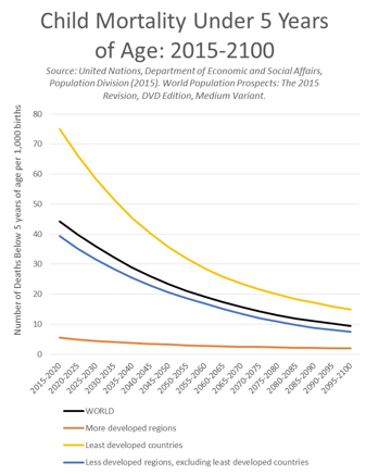V skutočnosti vyzerá byť budúcnosť pre ďalšie generácie svetlejšia, a to najmä v chudobnejších a menej rozvinutých krajinách. Úmrtnosť novorodencov a detí celosvetovo klesá. Do roku 2100 sa v menej rozvinutých krajinách úmrtnosť detí mladších ako päť rokov zníži až o 82% a v najmenej rozvinutých krajinách o 80%.