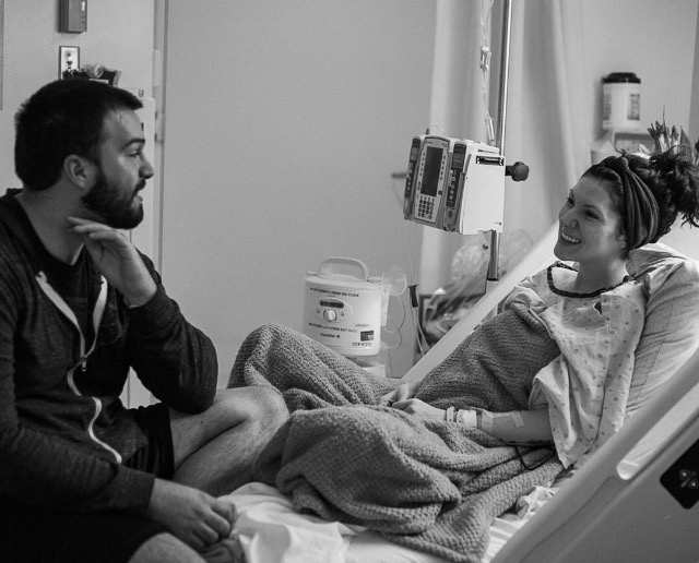 Vo štvrtok 1. októbra som šla na magnetickú rezonanciu kvôli svojim zažívacím ťažkostiam (také, ktoré je bezpečné aj počas tehotenstva). Počas vyšetrenia som zrazu začala cítiť kontrakcie. Nebola som si úplne istá, či sú to kontrakcie, pretože som prvorodička. Na chvíľu som to nechala tak a nevenovala som tomu veľkú pozornosť. V tú noc, asi o desiatej, som šla na ultrazvuk a ony [kontrakcie] výrazne zosilneli. Boli sústavné a bolestivé. Požiadala som teda, aby ma sledovali. Sledovali kontrakcie a zistili, že som určite začala rodiť. Dali mi teda lieky, ktorými sa pokúsili pozastaviť priebeh pôrodu.