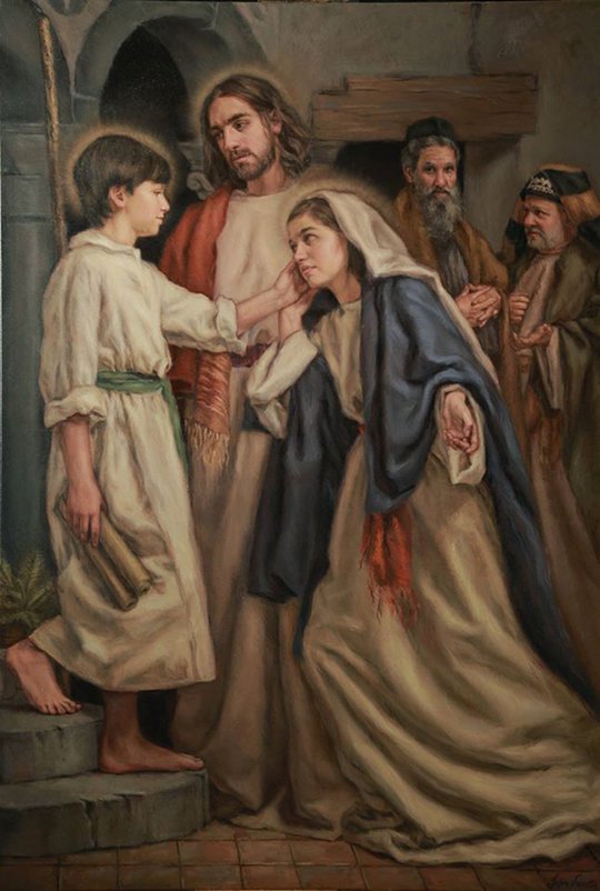 Písmo nehovorí: "A povedal im: Prečo ste ma hľadali? Nevedeli ste, že mám byť tam, kde ide o môjho Otca?“ Ale oni nepochopili slovo, ktoré im hovoril. A preto k Nemu Jozef prehovoril so slovami: "Toto je tvoja odpoveď? Čo povieš svojej utrápenej matke?" Potom Mária s bolesťou povedala: "Teraz ťa taaak uzemnil."
