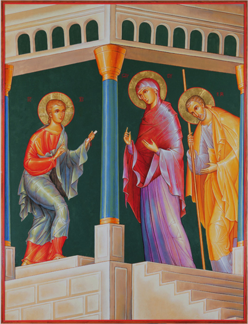 Rovnako ako sa dospelý Kristus premenil pred Petrom, Jánom a Jakubom, aby im pomohol znášať svoje umučenie, tak isto aj mladý Kristus dal Márii a Jozefovi lekciu, aby jeho činy nechápali v pozemskom zmysle slova, ale ako Božiu vôľu svojho Otca. Tak im pomohol vyriešiť ľudský smútok a úzkosť vo svetle Božieho tajomného plánu.